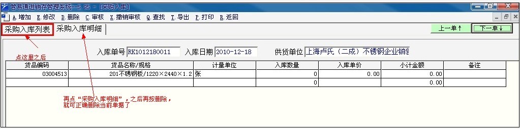 刪除的時(shí)候要注意下面這種情況:(即刪除顯示非當前單據)