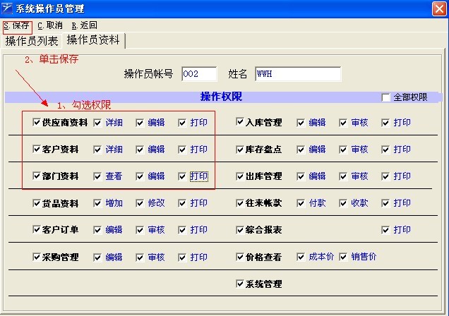 選擇[系統管理]——操作員權限分配——選擇操作員。如圖4。