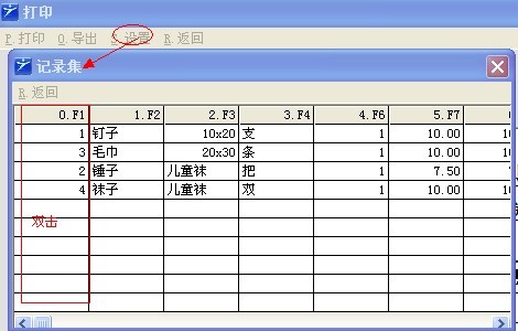 進(jìn)入“打印”界面后,點(diǎn)擊“設置”——“設置記錄集”,雙擊彈出窗口的第一列